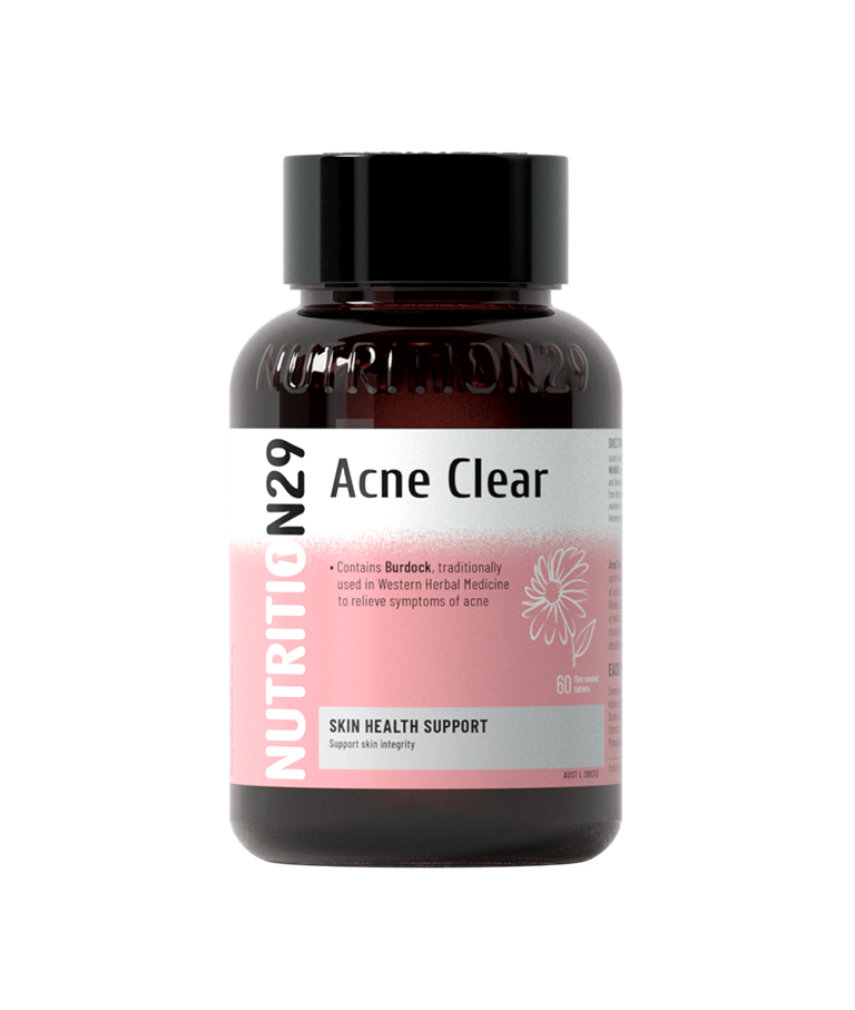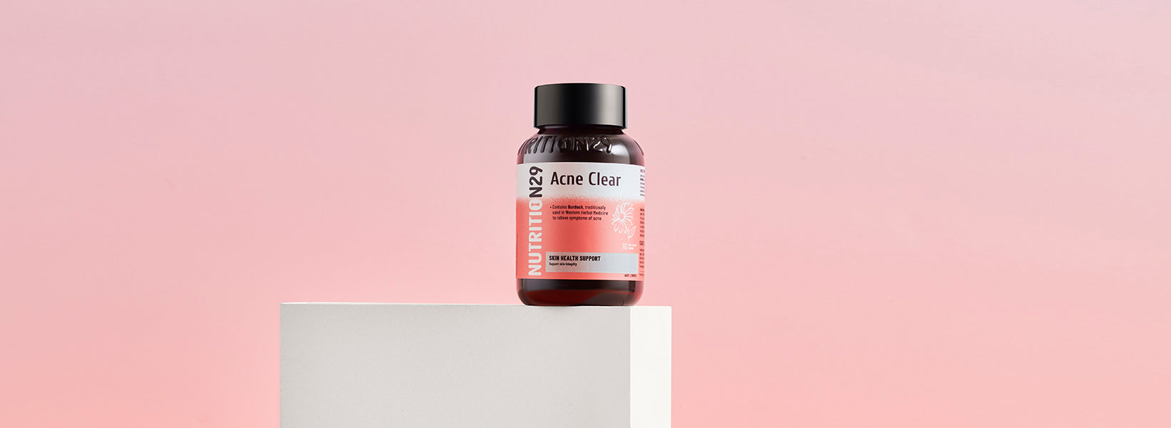 Acne clear contains 12 active ingredients, including Burdock which is traditionally used in Western Herbal Medicine to relieve symptoms of acne, along with zinc and vitamin B5 to support skin structure, as well as skin healing and repair in healthy individuals.